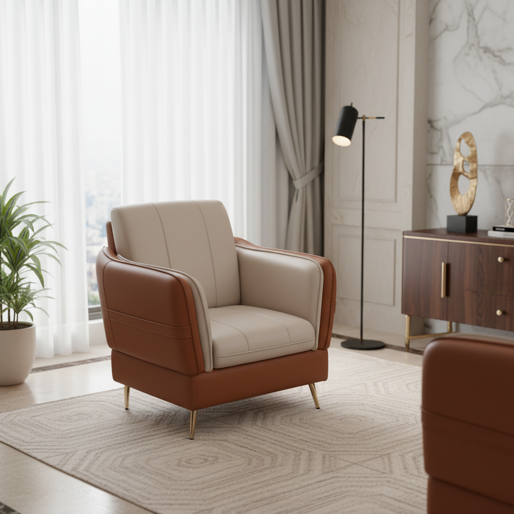 Plush and stylish, the Arlento Accent 1-Seater offers sturdy comfort with a solid wood frame and soft, breathable fabric upholstery.