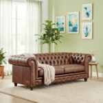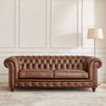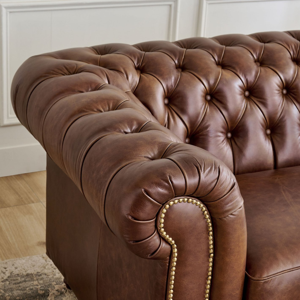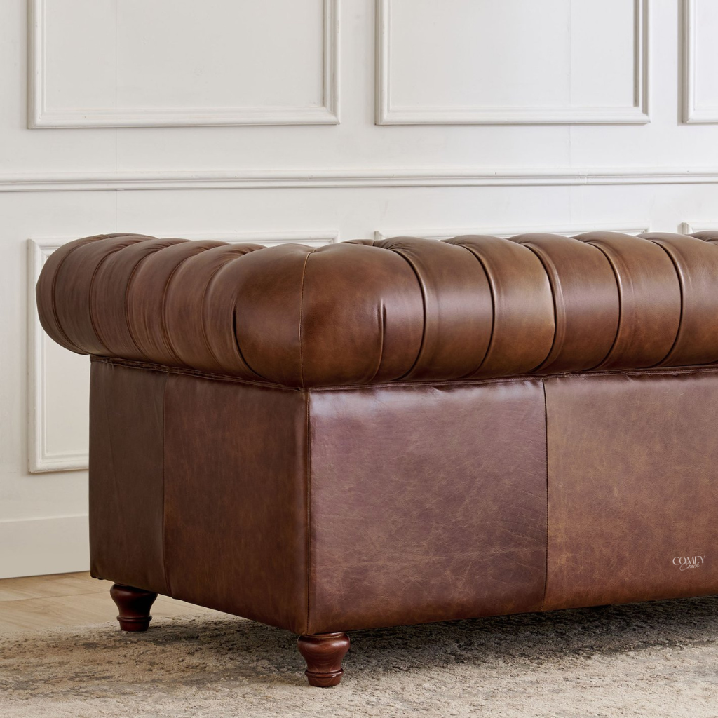 - Style: Chesterfield Leather Sofa with Wooden Legs