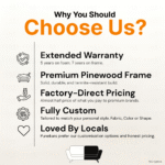 With factory-direct pricing, zero-defect guarantee, 5-year warranty and full customization, We ensure you get furniture that’s unique, durable, and built just for you